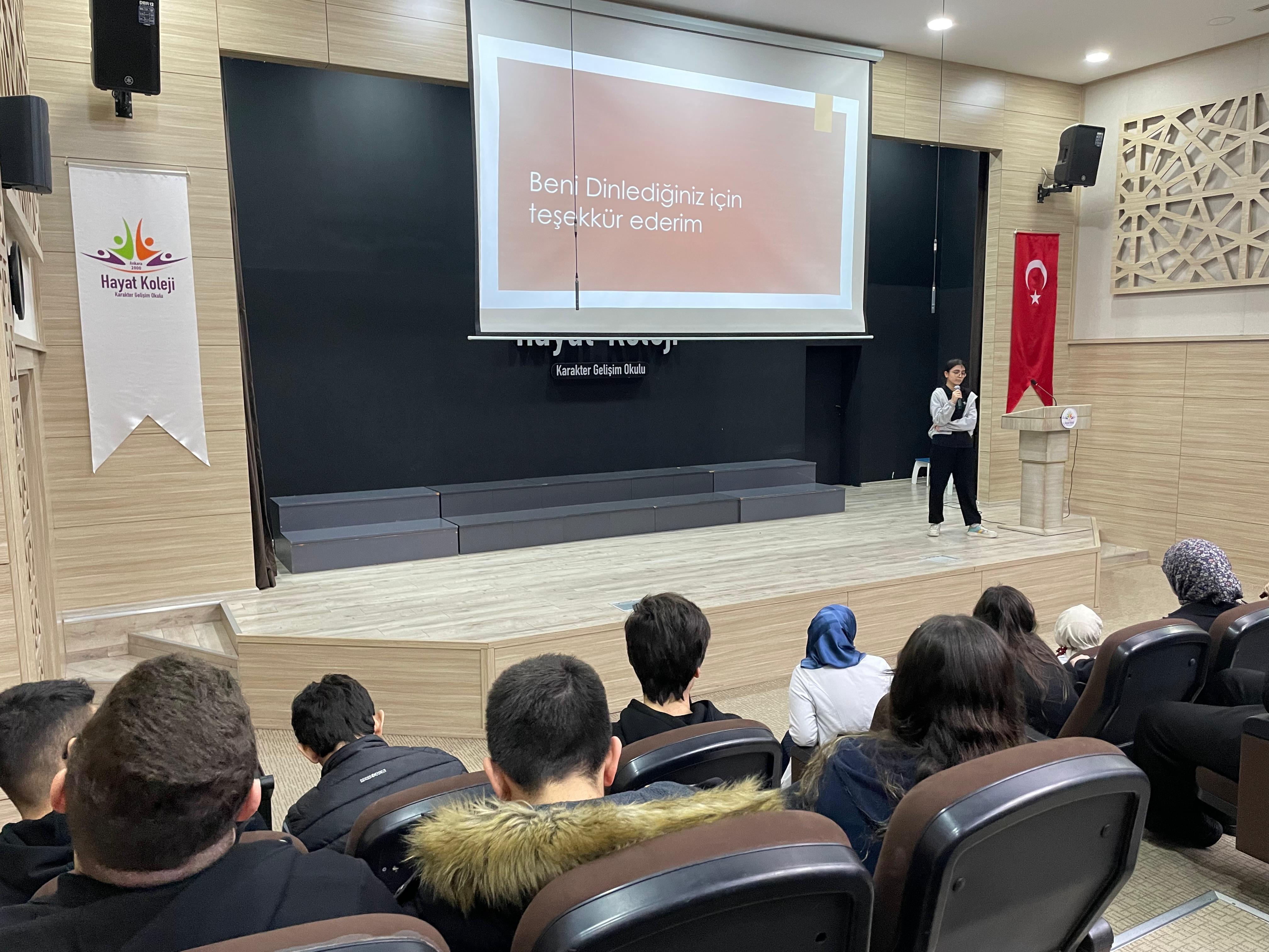 Sosyal medya, Doğu Türkistan, adabı muaşeret, gençlerin sorunları, bilimin dogmatikleşmesi, faiz sistemi gibi öğrencilerin seçtiği konuları mütalaa ettiğimiz Genç Hayat Düşünce Topluluğumuz her hafta aralıksız devam ediyor.